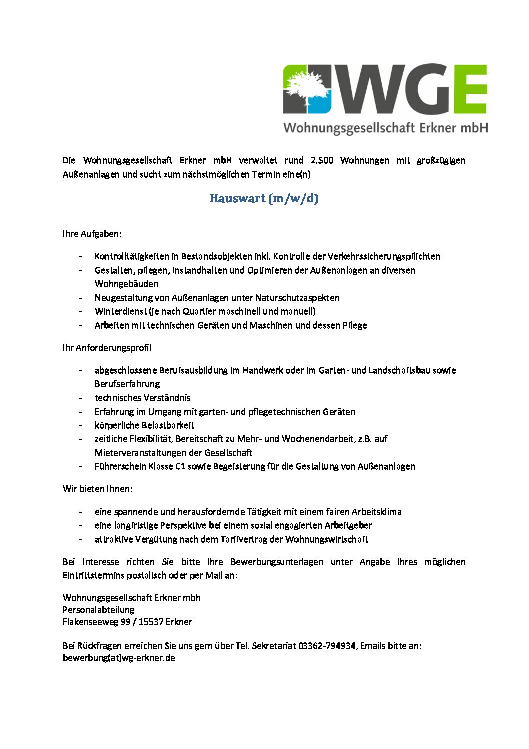 Bei Rückfragen erreichen Sie uns gern über Tel. Sekretariat 03362-794934, Emails bitte an: bewerbung(at)wg-erkner.de