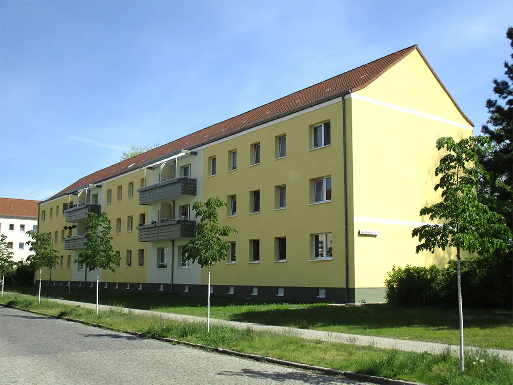 Die Objekte der Bahnhofsiedlung sind zum überwiegenden Teil 3-Geschosser, die in den 1950/60er Jahren erbaut worden.