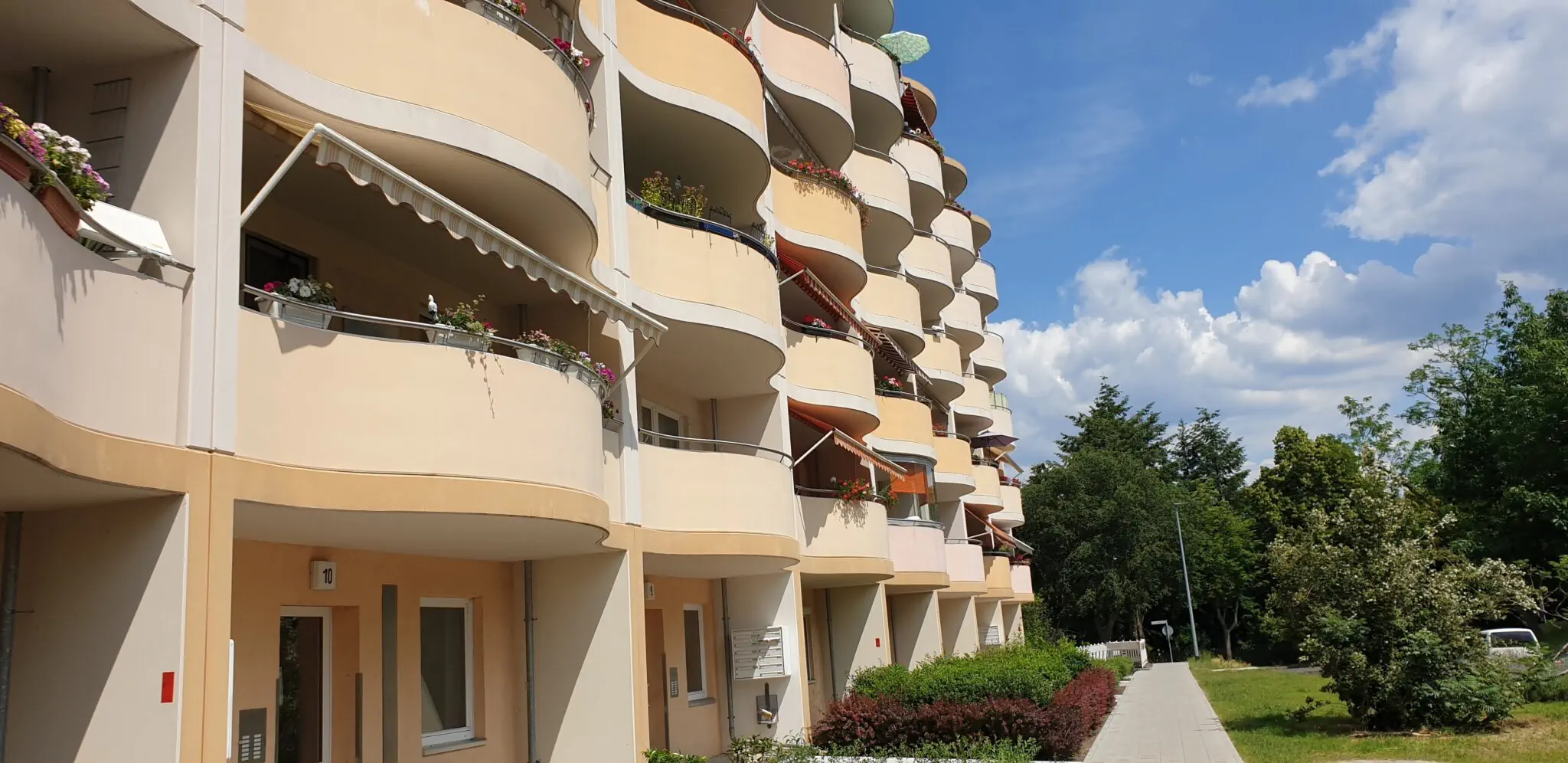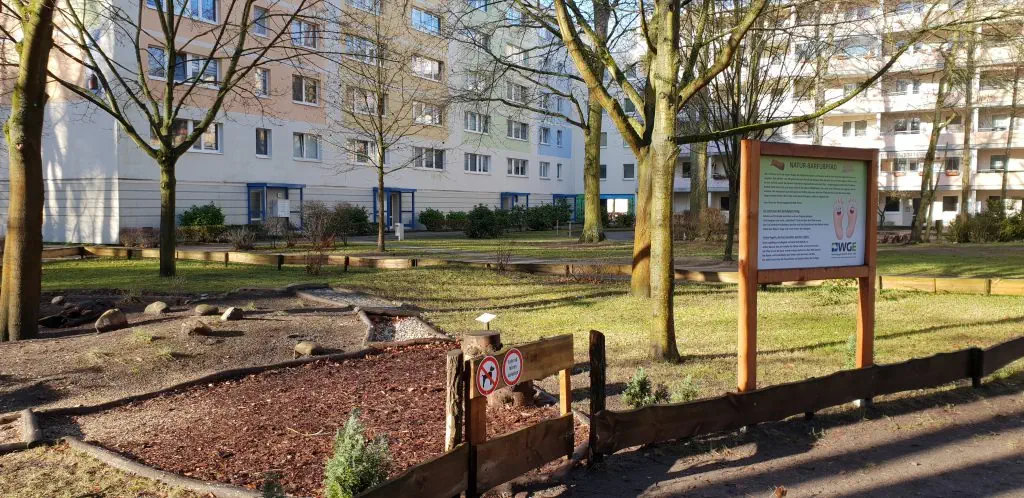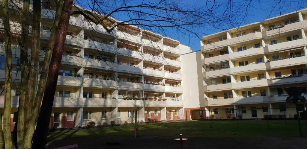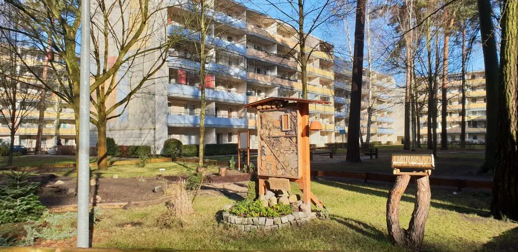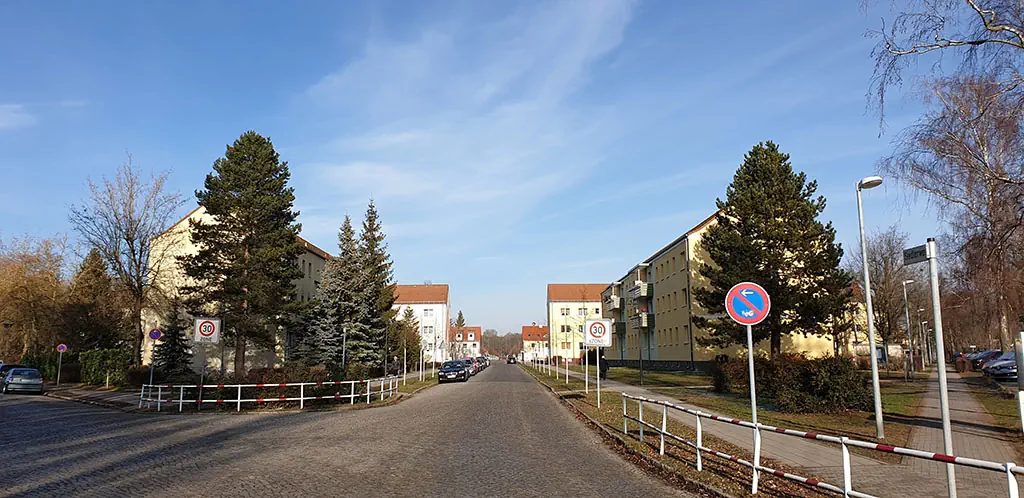 Dieses Wohngebiet besteht hauptsächlich aus 5-geschossigen Plattenbauten mit Aufzügen, hat aber durch mehrere alte Mehrfamilienhäuser und natürlich die Neubauten den Charme eines Mixes aus alt und neu.