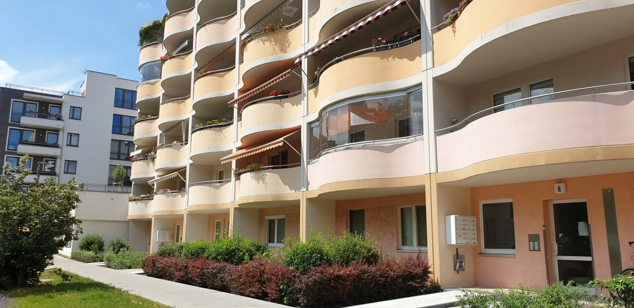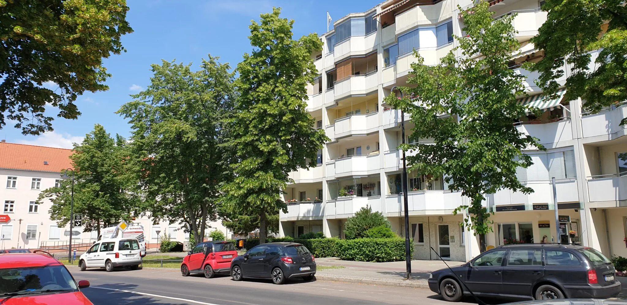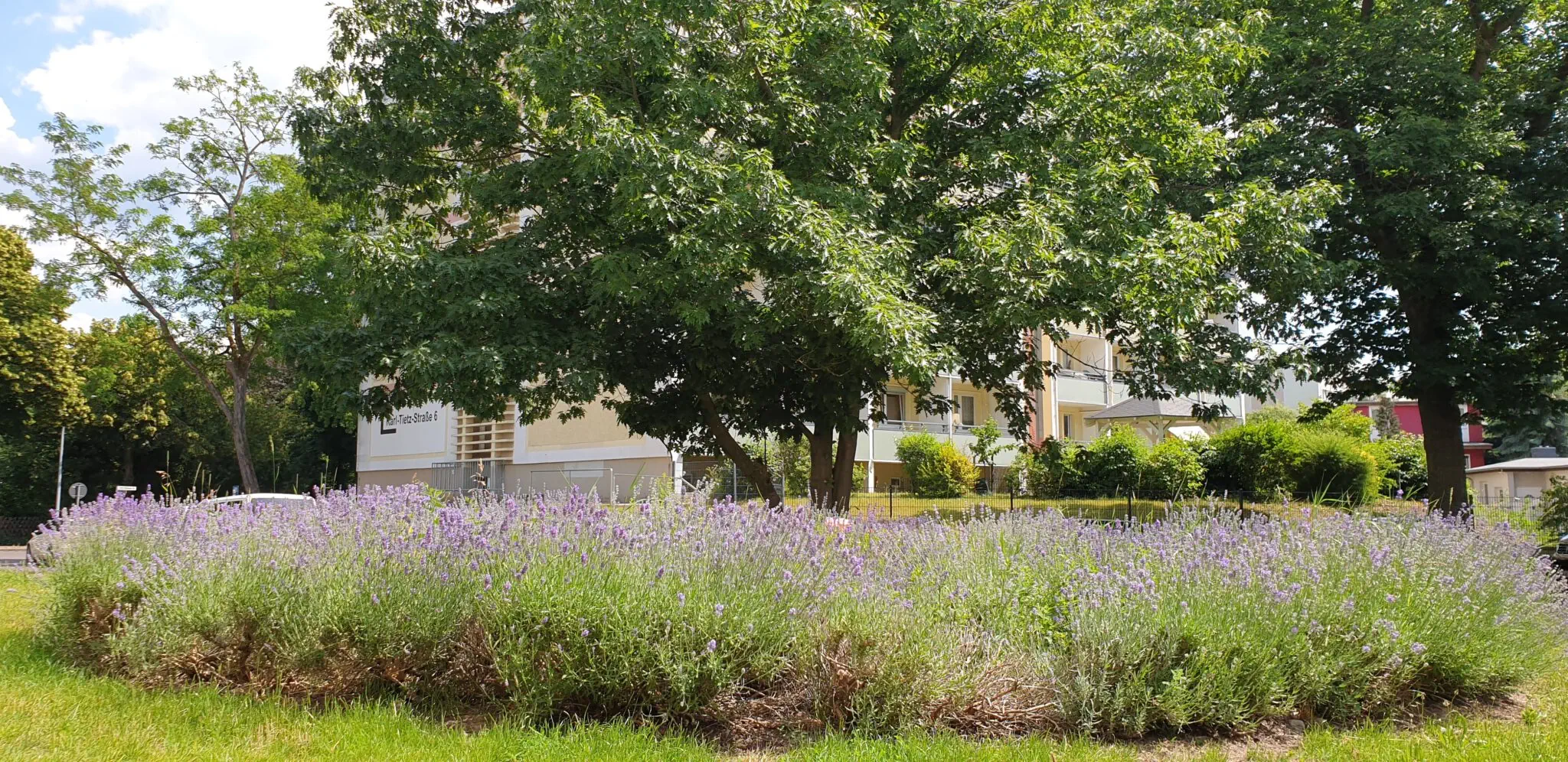Dieses Wohngebiet besteht hauptsächlich aus 5-geschossigen Plattenbauten mit Aufzügen, hat aber durch mehrere alte Mehrfamilienhäuser und natürlich die Neubauten den Charme eines Mixes aus alt und neu.